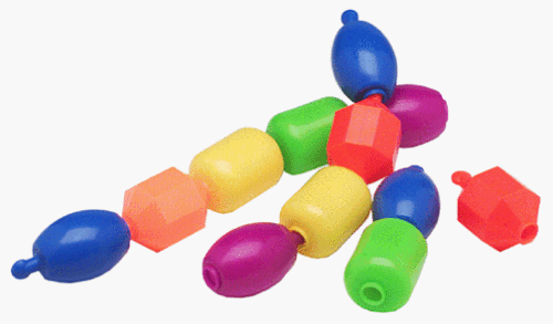 - Babies love repetitive play, and these brightly-colored beads offer stimulating fun while strengthening developing skills