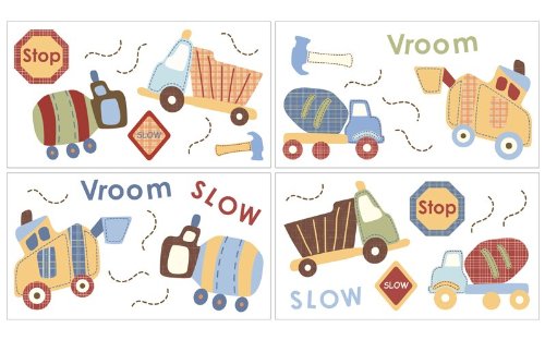 The road work wall appliques includes 4 - 10" x 18" sheets of wall stickers. Quick and easy - just peel and stick. They are removable and reusable and will not harm walls. Directions are included.