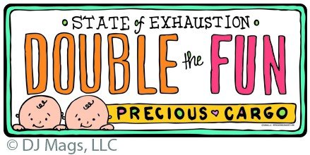 Oh baby! You're sleep deprived but steeped in love and protective instincts. You've got precious cargo in your car, let the folks behind you know not to follow too closely. And for you lucky parents that got a two-fer, there's the Double the Fun magnet, sure to get you twice the respect!Double the Fun is 5" by 12" and comes packaged cute enough to attend the Baby Shower. All it will need is a little ribbon and a card!